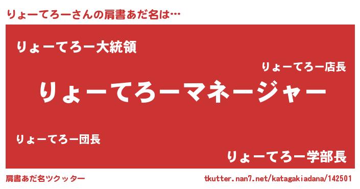 | ファンタジー風あだ名 | 『エターナルリョーテローー』 |