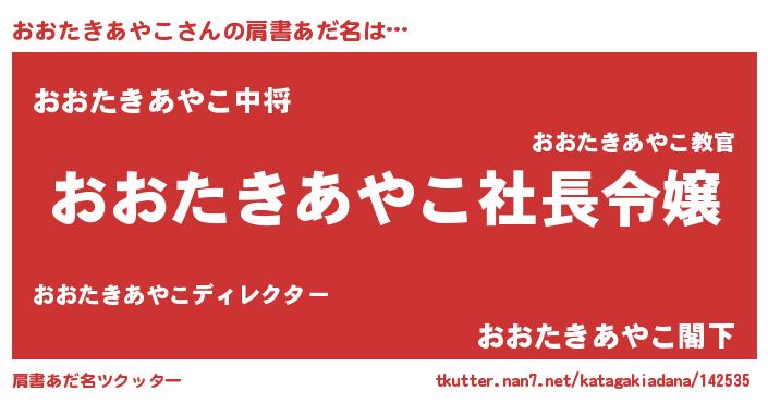 | 胡散臭い通販商品みたいなあだ名 | 『必ず成功する霊験あらたかなお札…その名も「おおたきあやこ」』 |