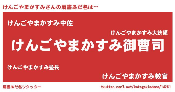 | 男性向けラノベタイトル風あだ名 | 『けんごやまかすみの憂鬱』 |