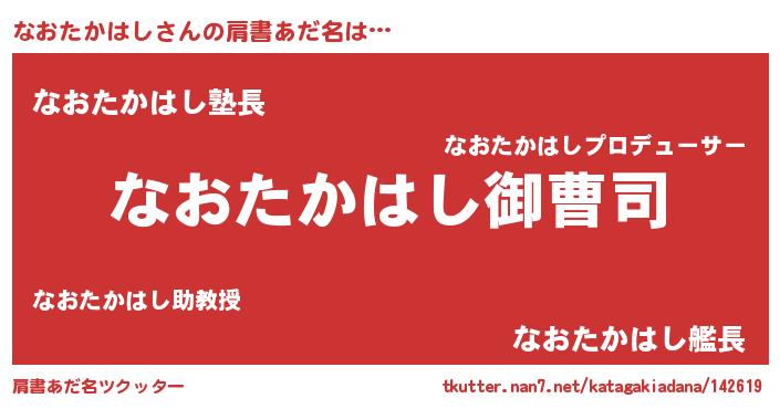 | 胡散臭い通販商品みたいなあだ名 | 『億万長者になれる霊験あらたかなお札…その名も「なおたかはし」』 |