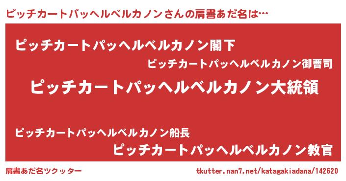 | 男性向けラノベタイトル風あだ名 | 『やはりピッチカートパッヘルベルカノンの青春ラブコメはまちがっている 』 |