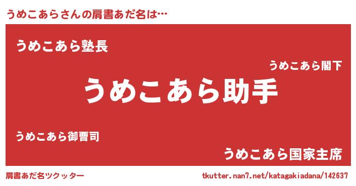 | 欧米人風あだ名 | 『ダニエルうめこあら』 |