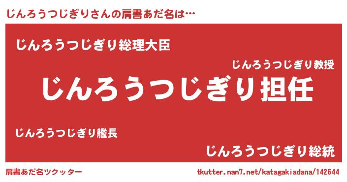 | 男性向けラノベタイトル風あだ名 | 『誰もが恐れるあのじんろうつじぎりが、ぼくの専属メイドになるようです。』 |