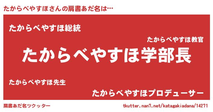 | ヘコむあだ名 | 『たからべやすほ(遠い目)』『たかっふぃ~』 |