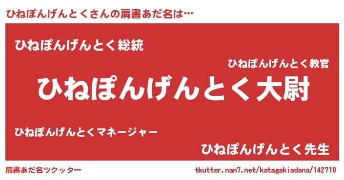 | 男性向けラノベタイトル風あだ名 | 『転生したらひねぽんげんとくだった件』 |