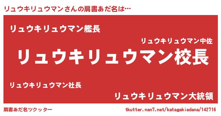 | 伝説のあだ名 | 『古文書に記された暗殺者リュウキリュウマン』 |