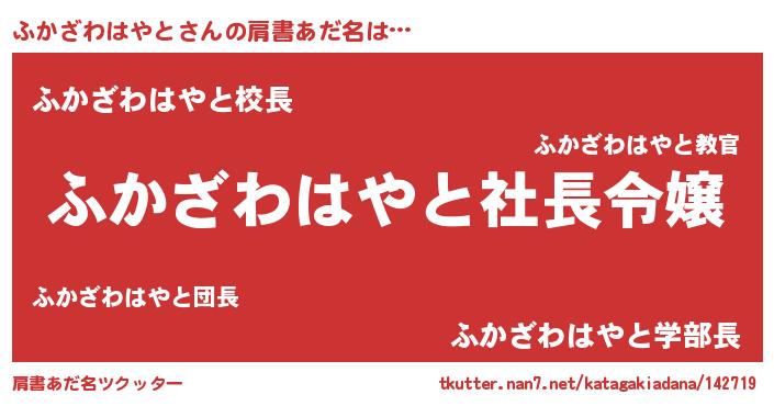 | ヒーロー風カッコイイあだ名 | 『スーパーフカザワハヤト』 |