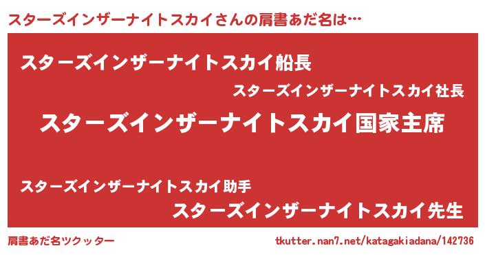 | 男性向けラノベタイトル風あだ名 | 『やはりスターズインザーナイトスカイの青春ラブコメはまちがっている 』 |