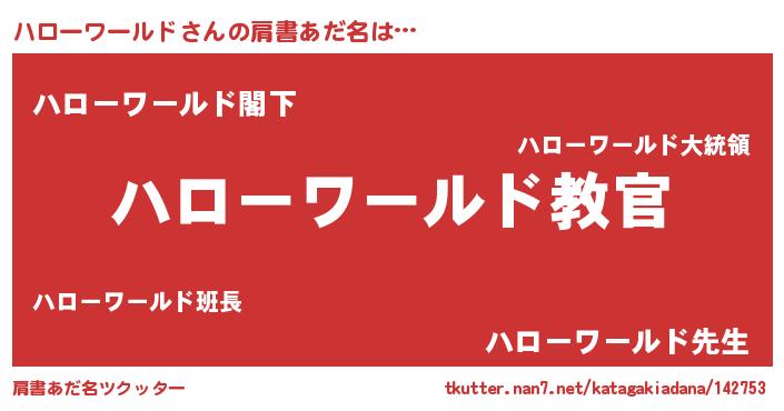 | 意味不明あだ名 | 『住所不定無職ハローワールド(11歳)』 |