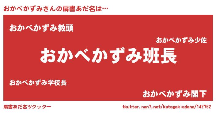 | 女子向けラノベタイトル風あだ名 | 『おかべかずみの卵を拾いまして』 |