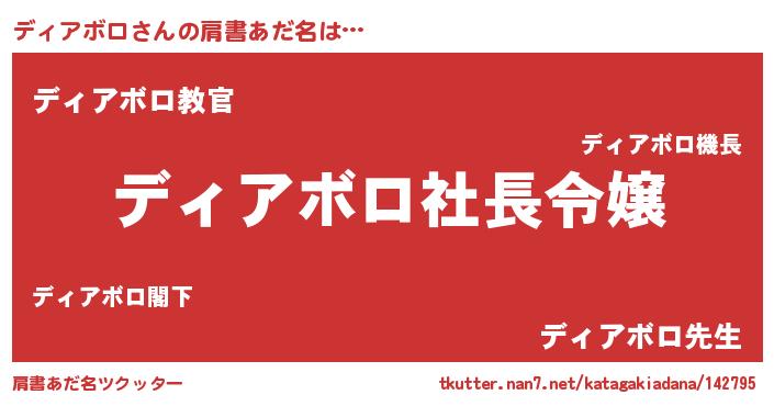 | 男性向けラノベタイトル風あだ名 | 『ディアボロの憂鬱』『緋弾のディアボロ』 |