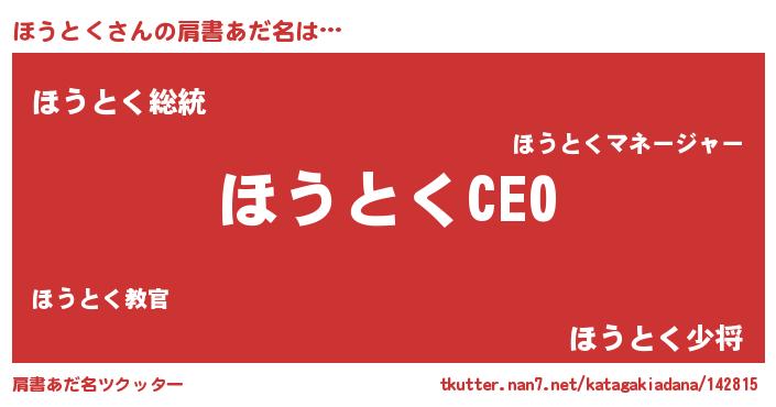 | ヒーロー風カッコイイあだ名 | 『スーパーホウトク』『仮面ホウダー』 |