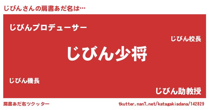 | 男性向けラノベタイトル風あだ名 | 『じびん~年齢イコール彼女いない歴の魔法使い~』 |