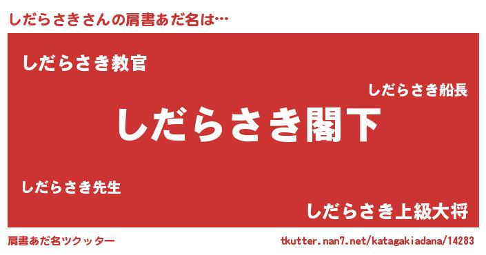 | 女子向けラノベタイトル風あだ名 | 『しだらさきなんてお断りですっ。』 |