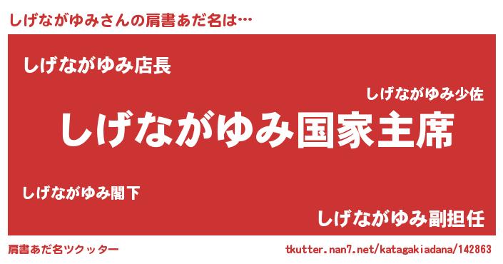 | 意味不明あだ名 | 『しげながゆみフォーエバー』 |