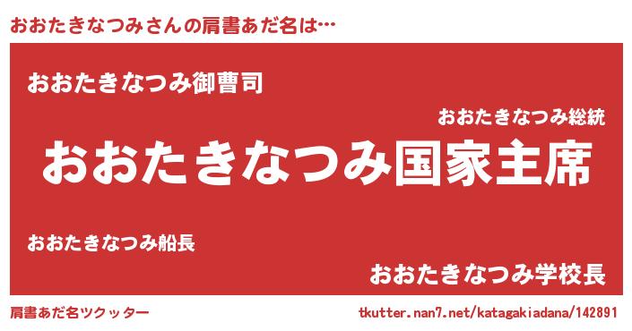 | 女子向けラノベタイトル風あだ名 | 『おおたきなつみの雑貨屋さん』 |