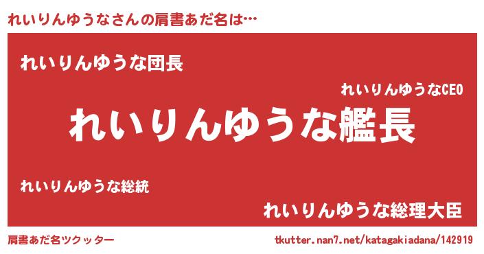 | 欧米人風あだ名 | 『れいりんゆうな・ステッグマイヤー』 |