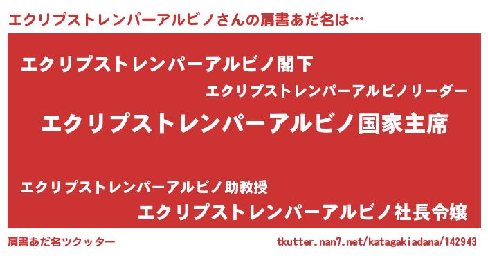 | ファンタジー風あだ名 | 『エターナルエクリプストレンパーアルビノー』 |