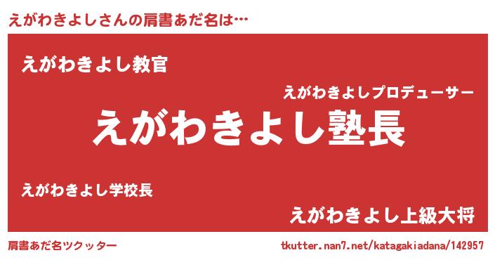 | 意味不明あだ名 | 『とにかく怪しいえがわきよし』 |