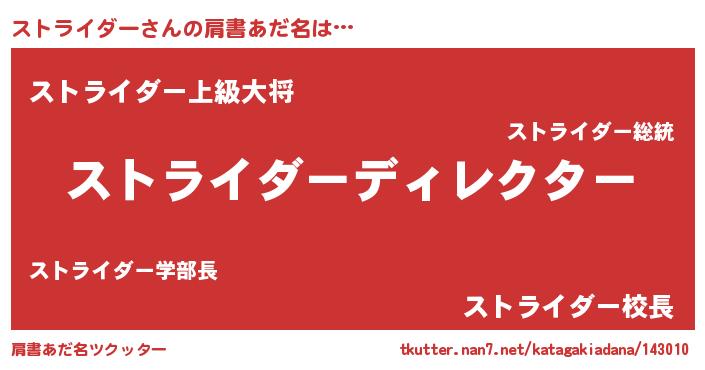 | 男性向けラノベタイトル風あだ名 | 『はたらくストライダーさま!』 |