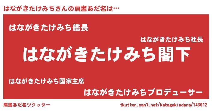 | 女子向けラノベタイトル風あだ名 | 『はながきたけみちなんてお断りですっ。』 |