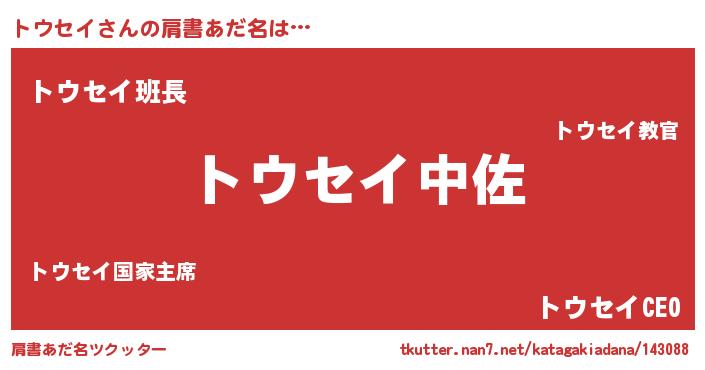 | 男性向けラノベタイトル風あだ名 | 『トウセイ~年齢イコール彼女いない歴の魔法使い~』 |
