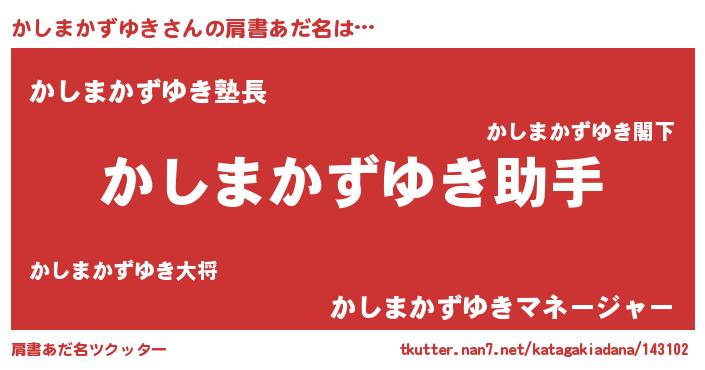 | 男性向けラノベタイトル風あだ名 | 『ノーゲーム・ノーカシマカズユキ』 |