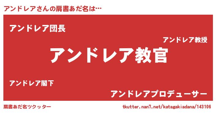| 女子向けラノベタイトル風あだ名 | 『アンドレアが死なない童話 林檎のアンドレアの診療簿』 |