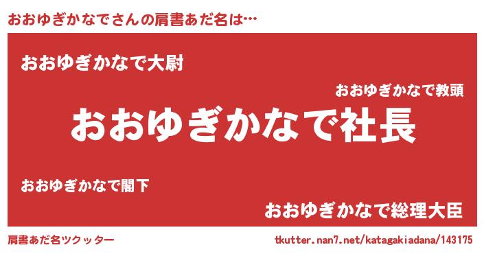 | 男性向けラノベタイトル風あだ名 | 『おおゆぎかなでの憂鬱』 |