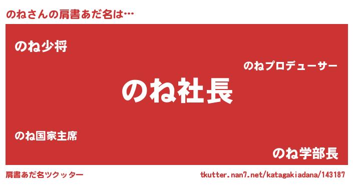 | ヘコむあだ名 | 『のねにー』『豆乳』『のね(遠い目)』 |