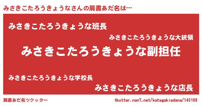 | ヘコむあだ名 | 『みさきこたろうきょうな(遠い目)』 |