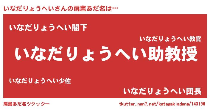 | 男性向けラノベタイトル風あだ名 | 『ノーゲーム・ノーイナダリョウヘイ』 |