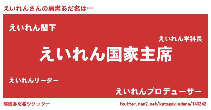 | 意味不明あだ名 | 『えいれんフォーエバー』『自称えいれん』 |