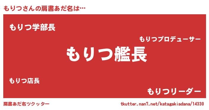 | ヒーロー風カッコイイあだ名 | 『愛の使者もりつ』『魔戒騎士モリ』 |