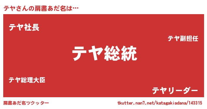 ポケモン風あだ名 | 『テヤセウス』『テヤチュウ』 |