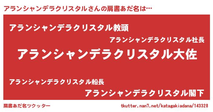 | 欧米人風あだ名 | 『トリンドルアランシャンデラクリスタル』 |