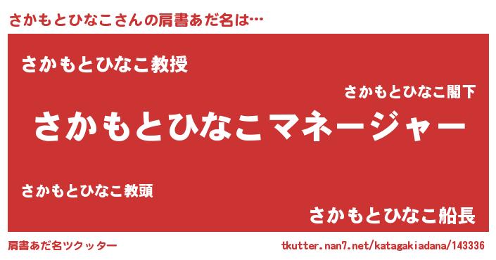 | 男性向けラノベタイトル風あだ名 | 『はたらくさかもとひなこさま!』 |