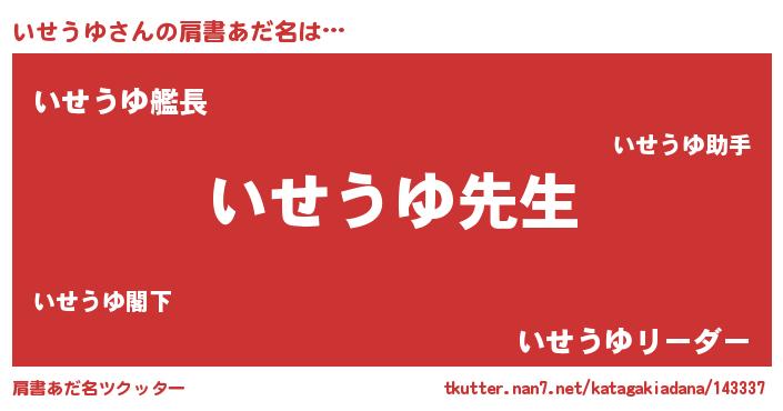 | 意味不明あだ名 | 『永久保存いせうゆ』『自称いせうゆ』 |