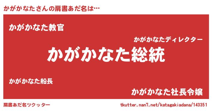 | ヒーロー風カッコイイあだ名 | 『超時空戦士カガカナタ』『仮面カガダー』 |