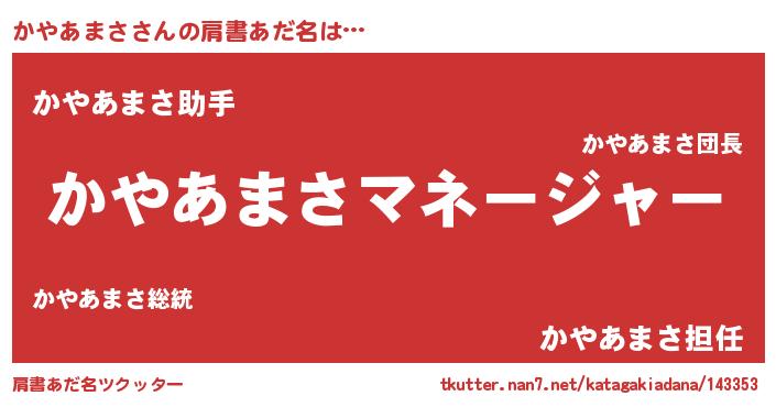 | ヒーロー風カッコイイあだ名 | 『慈愛の使者かやあまさ』『暗黒騎士カヤ』 |