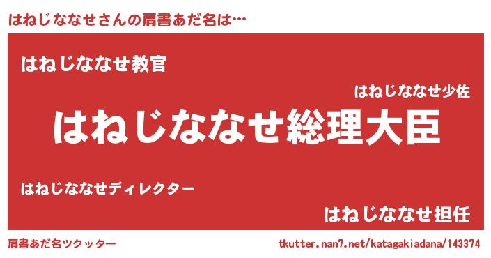 | 意味不明あだ名 | 『はねじななせフォーエバー』 |