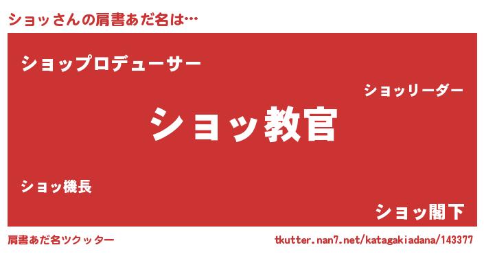 | 男性向けラノベタイトル風あだ名 | 『この素晴らしい世界にショッを!』 |