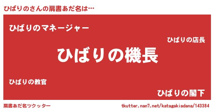 | ヒーロー風カッコイイあだ名 | 『サイバー戦士ヒバリノ』『仮面ヒバダー』 |