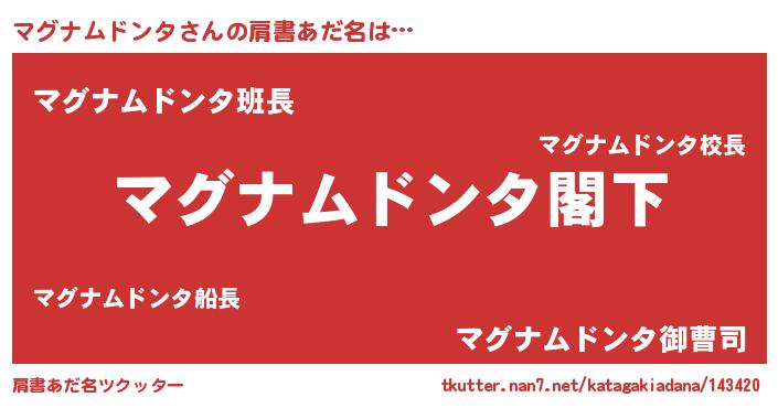 | 男性向けラノベタイトル風あだ名 | 『魔法科高校のマグナムドンタ』 |