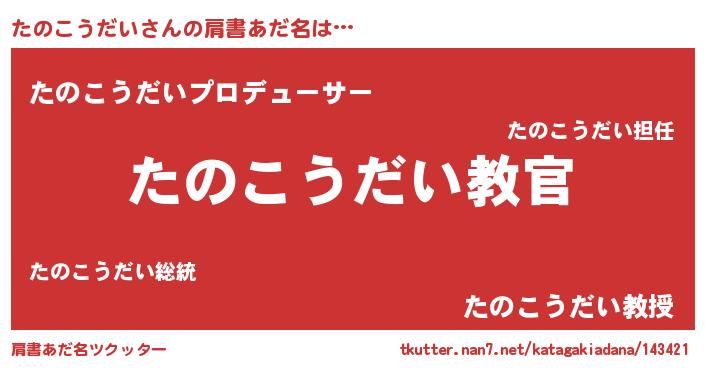 | 意味不明あだ名 | 『住所不定無職たのこうだい(9歳)』 |