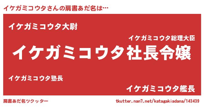 | 男性向けラノベタイトル風あだ名 | 『イケガミコウタアートオンライン』 |