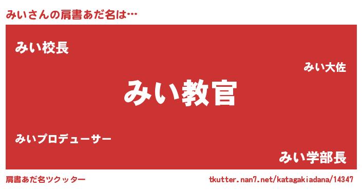 | ヒーロー風カッコイイあだ名 | 『仮面ミイダー』『ネオミイ』 |