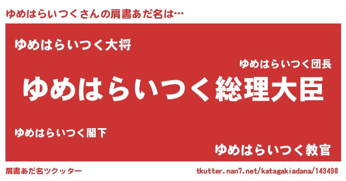 | 意味不明あだ名 | 『ゆめはらいつくフォーエバー』 |