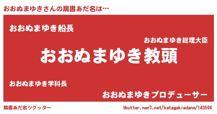 | 女子向けラノベタイトル風あだ名 | 『異世界で失敗しない100のおおぬまゆき』 |