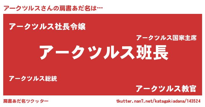 | 胡散臭い通販商品みたいなあだ名 | 『信頼と実績のサプリメント…その名も「アークツルス」』 |